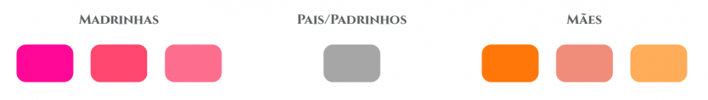 Vale ressaltar que a paleta de cores das mães, pais, madrinhas e padrinhos são as abaixo: